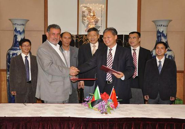 徐飛洪大使(右三)與阿方能源水利部水務司長穆罕穆迪(左二)互換移交證書