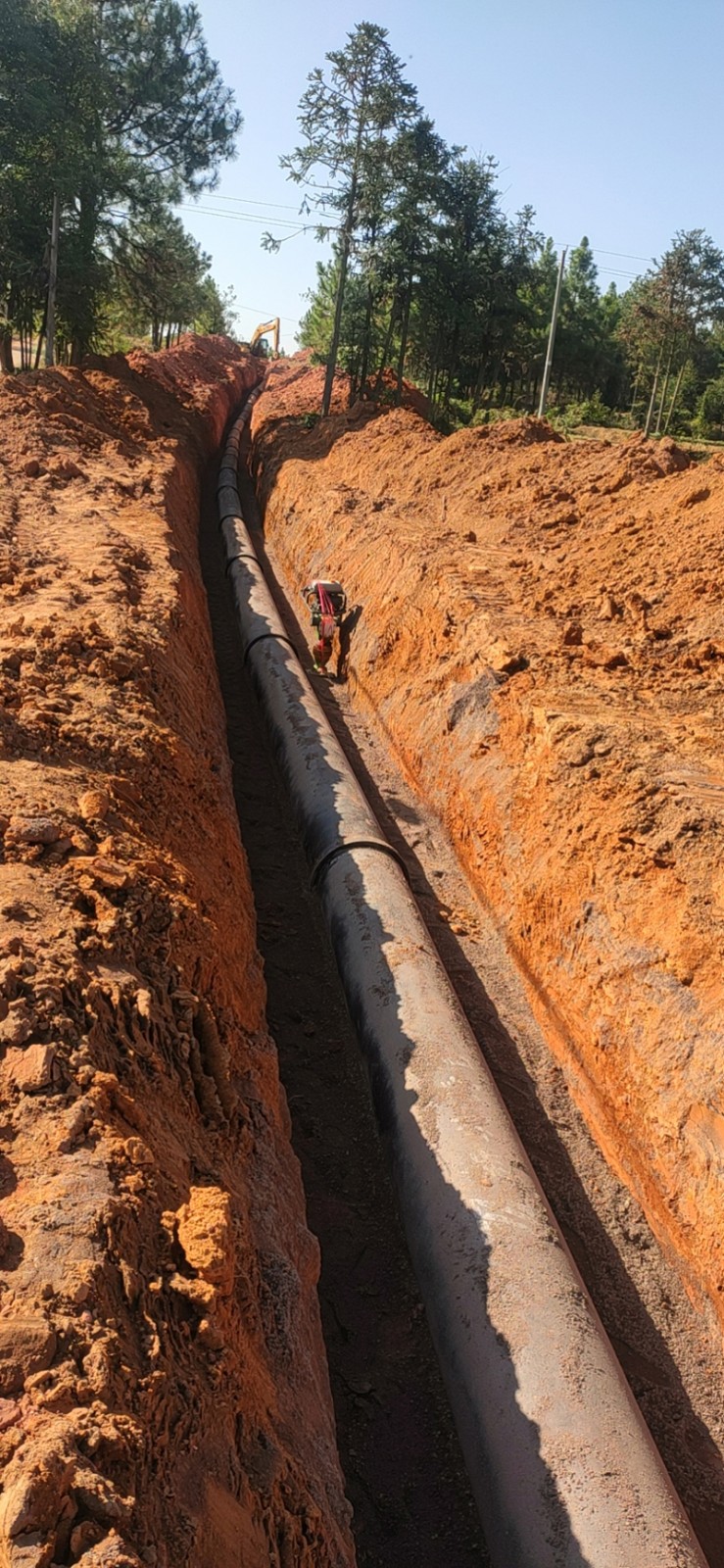 集團承建的鷹潭市余江區城鄉供水一體化一期項目南、北線供水主管網鋪設工程位于鷹潭市余江區,主管總長75.3km,合同投資10473.3萬元,合同工期174天。該項目面臨時間緊,任務重等重重困難,為順利推進項目建設,施工項目部人員爭分奪秒,晝夜奮戰,抓住晴好天氣,搶抓施工進度,確保工程按時完工。