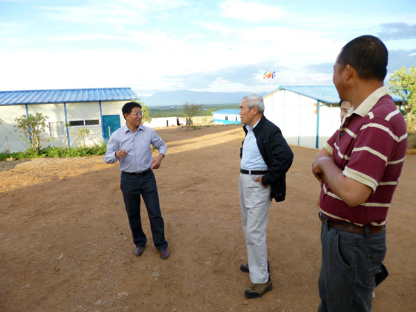 2013年10月5日,中國駐埃塞俄比亞大使解曉巖、經(jīng)贊處參贊錢兆剛等一行赴我公司埃塞KURAZ灌溉項(xiàng)目視察指導(dǎo)工作。我公司副總經(jīng)理聶玉和率項(xiàng)目組及駐埃辦事處工作人員熱情接待了解曉巖大使一行,并匯報(bào)了我公司在埃塞發(fā)展及KURAZ項(xiàng)目建設(shè)進(jìn)展情況。