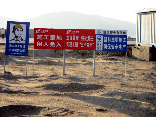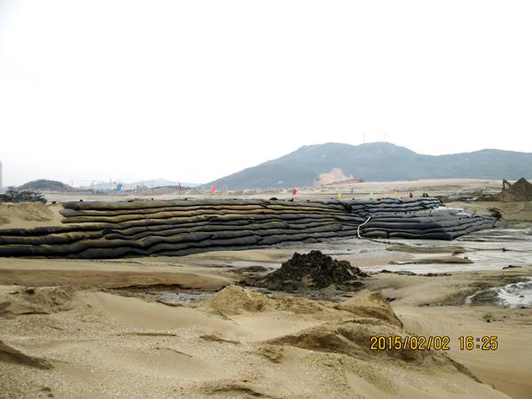 平潭綜合實(shí)驗(yàn)區(qū),主島為海壇島,位于福建省東部,與臺灣隔海相望,是中國大陸距離臺灣島最近的地方,是中國第五大島,有福建的“馬爾代夫”之稱。平潭綜合實(shí)驗(yàn)區(qū)如意湖防潮閘工程項(xiàng)目總投資1.3億元,我公司承建的土建工程包括排澇閘、防潮閘、公路橋、上下游兩岸翼墻、防沖消能、控制房等土建工程施工(含導(dǎo)流明渠開挖、圍堰填筑)。平潭(簡稱嵐)年平均風(fēng)速超過五級以上,大風(fēng)呼嘯,沒來這里感受不到風(fēng)有多大!依據(jù)工程設(shè)計及進(jìn)度要求,在落差8m潮汐中的軟基上進(jìn)行圍堰模袋充砂以截流海水,在惡劣地質(zhì)條件的海中建閘,與潮水賽跑、跟臺風(fēng)搶工期,潮起潮落,給工程建設(shè)平添了許多艱難與艱辛。