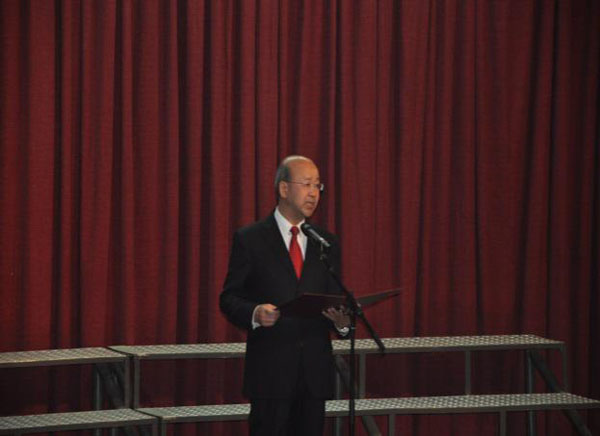中國駐肯尼亞大使劉顯法在合唱比賽前發表講話,祝賀中國人民抗日戰爭暨反法西斯戰爭勝利70周年,并向全體中資員工致以節日的問候,及對各中資公司參賽人員表示誠摯的祝愿。隨后,合唱比賽在紅色經典歌曲——《游擊隊之歌》中拉開了序幕。
