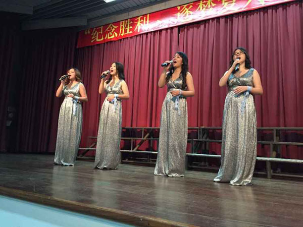 各參賽單位演唱了一首首歌頌祖國、紀念抗戰勝利的歌曲。我公司代表隊由四位女生獻唱了一首《我愛這藍色的海洋》,曲目悠揚、柔美,博得了在場觀眾一致的好評和熱烈的掌聲,弘揚了水建人奮發向上的精神,表現了鋼鐵意志之外的浪漫情懷,也唱出了對祖國人民的深深愛戀,并取得了第七名的好成績。本屆合唱比賽在膾炙人口的《五星紅旗》歌曲聲中落下了帷幕。