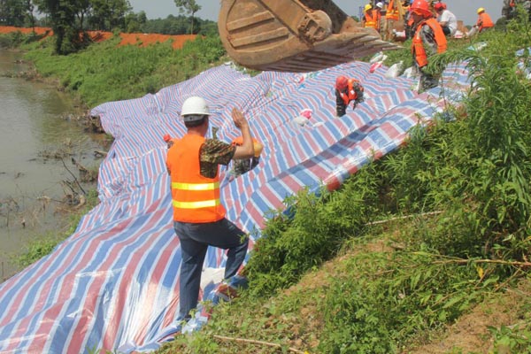 本次演練是以貴溪市新田聯圩防洪工程施工項目所在地連日持續大雨天氣,引發羅塘河河水暴漲,導致樁號K10+247~K11+000段大堤出現塌方、開裂現象,啟動防汛應急預案為背景,開展的防汛演練。演練科目包括:險情報告、啟動應急預案,組織應急救援隊伍投入搶險,堤腳拋石固腳、堤身砂卵石及土方填筑、堤身迎水面鋪設防沖彩條布、編織袋裝砂石堤身加固等內容。演習完成后,參與演習的主要成員,對本次演習效果進行了評價,為公司《防汛應急預案》的修訂完善作了充分的基礎工作。