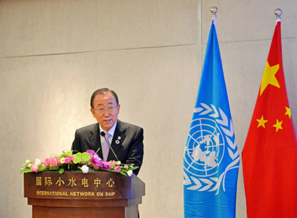 集團(tuán)資訊 7月9日上午,聯(lián)合國(guó)秘書長(zhǎng)潘基文出席了由聯(lián)合國(guó)開發(fā)計(jì)劃署、聯(lián)合國(guó)工發(fā)組織、國(guó)際小水電中心共同舉辦的“應(yīng)對(duì)氣候變化南南合作主題會(huì)”,并發(fā)表重要講話,會(huì)議在國(guó)際小水電中心舉行。聯(lián)合國(guó)副秘書長(zhǎng)吳紅波、中國(guó)駐聯(lián)合國(guó)代表劉結(jié)一大使等陪同出席。