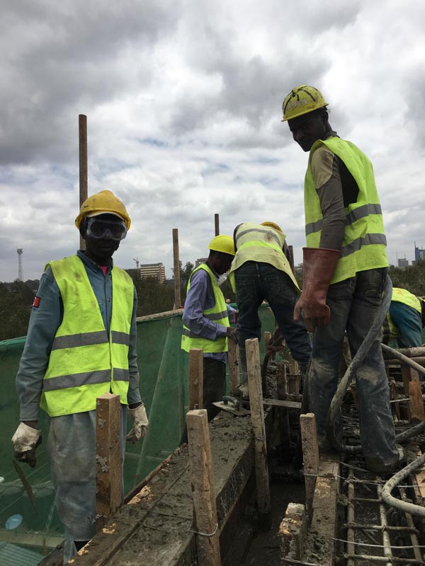 在進度上,全體項目部人員團結一致,良好協作,嚴格按照月進度計劃執行。各崗位人員制定周施工計劃和日工作安排,把工作盡量往前排,各工序采取“流水線”作業模式,同時做好各崗位的良好協調和對接,使工作更加科學、規范和有序。在日常的工作中,各崗位人員積極交流,做到各項工作不沖突、不拖累。在搶進度、拼速度的“戰役”中,項目部各崗位人員主動加班加點,管理人員以身作則,帶著肯尼亞當地員工趕工期、搶進度,全體項目部人員斗志高昂,激情飽滿。
