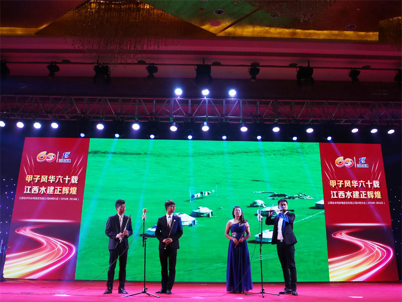 在喜慶熱鬧的開場舞《盛世中華》樂曲聲中,拉開了晚會的序幕,一曲優(yōu)美動聽的《今天是你的生日》,表達了對公司六十華誕的深情祝福,配樂詩朗誦《我驕傲,我是水建人》抒發(fā)了水建人對水利事業(yè)的熱愛與執(zhí)著,舞蹈《我的祖國》,展現(xiàn)了公司退休女職工的精神風采和對公司的深厚感情,男聲獨唱《羅灣那個地方》,喚起了多少“羅灣水建人”曾經(jīng)在那里生活的記憶,來自上海的退休職工代表,為晚會帶來一首自己改編的歌曲《水建的朋友來相會》,詮釋了他們的激情與夢想,最后,由公司高中層管理人員和總部員工組成的60人大合唱《團結(jié)就是力量》,把晚會推向了高潮。團結(jié)是我們的力量之源,團結(jié)是企業(yè)騰飛的支點,走過了六十年輝煌歷程的江西水建,正在昂首闊步踏上新的征程。讓我們團結(jié)起來,以必勝的信心,發(fā)奮的努力,繼承和發(fā)揚老一輩水建人的精神和傳統(tǒng),擔當起新一代水建人改革創(chuàng)新科學發(fā)展的光榮使命,繼往開來,解放思想,開拓創(chuàng)新,凝心聚力,不斷開創(chuàng)江西水建發(fā)展的新局面,創(chuàng)造更加燦爛的明天!