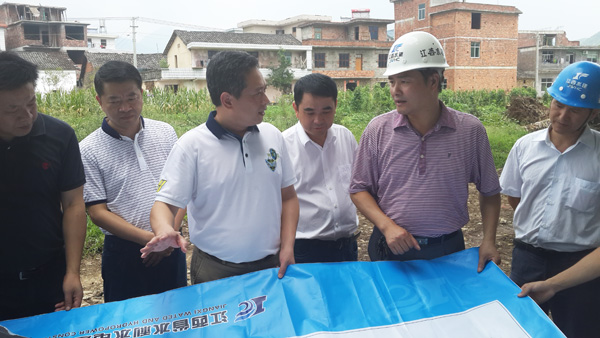 2014年8月8日上午,上饒市委書記陳俊卿一行來到我公司承建的玉山縣樟村鎮防洪工程檢查指導工作。來到施工現場,陳俊卿書記一行頂著炎炎烈日,深入查看并了解了防洪工程的投資規模和施工生產建設情況,隨后,項目部經理楊小貴對項目完工后將產生的防洪生態效益作了簡單介紹,陳俊卿書記聽后非常高興,他指出,項目部和承建單位要齊心協力,加強安全生產管理,確保工程順利完工,早日造福當地百姓。最后,陳俊卿書記還詢問了施工人員的生活情況,叮囑項目部既要保證工程施工進度,也要注意防暑工作,讓員工家屬放心。