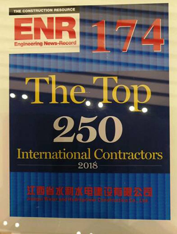 8月31日,“2018年ENR國際承包商250強排名發布儀式暨業務交流研討會”在中國對外承包商會舉行。69家本年度“ENR國際承包商會 250強”中國上榜企業代表等180人出席活動。我司國際排名174位,國內共69家單位上榜,我司國內排名51位,江西水建董事、海外公司總經理黃鄭民代表企業出席會議并捧回獎牌。