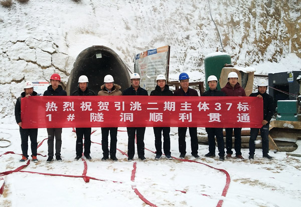 期間,徐洪良總經(jīng)理一行與業(yè)主、設(shè)計、試驗檢測、監(jiān)理等單位的領(lǐng)導(dǎo)頂著鵝毛大雪,參加了37標1#隧洞貫通儀式。