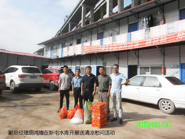 連日的高溫天氣炙烤著贛潘大地,依然奮戰(zhàn)在公司各項(xiàng)目一線施工的廣大員工牽動(dòng)著公司領(lǐng)導(dǎo)的心。7月下旬開始,受公司董事長王元旦委托,總經(jīng)濟(jì)師孫八根、總工程師胡鴻煌、副總經(jīng)理曾朝文、總經(jīng)理助理杜凌、黨委副書記劉俊、安全管理部副經(jīng)理王海鵬等深入施工一線,開展到各項(xiàng)目走訪慰問“送清涼”活動(dòng),給在高溫中堅(jiān)守工作崗位的一線員工送上慰問品,把清涼送到一線工作區(qū)域;道一聲“辛苦了”,把關(guān)懷送到員工的心坎上。