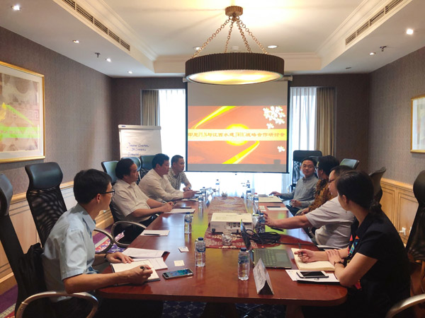在印尼期間,王元旦董事長陪同中國出口信用保險公司江西分公司總經理徐敦鵬一行分別與我公司當地合作方、印尼PLN相關部門負責人進行座談交流。徐敦鵬總經理向我公司當地合作方及印尼PLN相關部門負責人介紹了中國信保的政策性職能,聽取了項目基本介紹,了解了當地水電站投資開發流程及政策,并就項目投融資結構搭建事宜進行深入溝通,對項目落地起到了積極的推動作用。