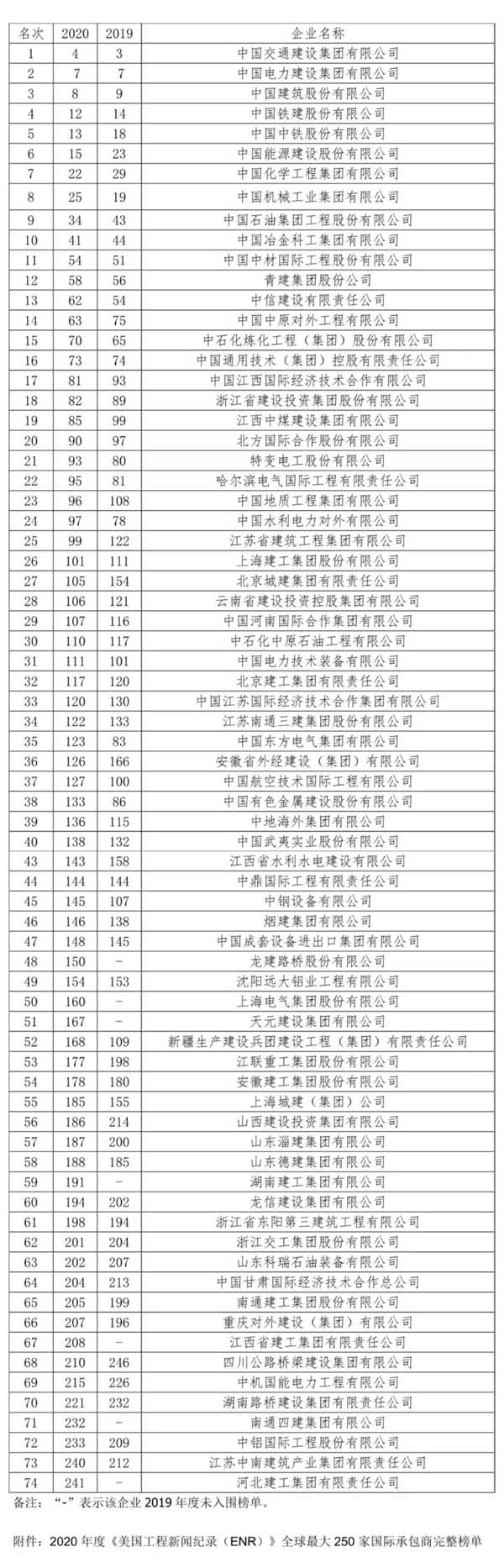 美國當(dāng)?shù)貢r間8月20日,2020年度美國《工程新聞紀(jì)錄(ENR)》“全球250家國際承包商”榜單發(fā)布。