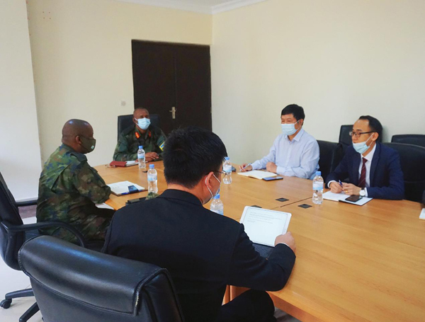 張周平一行會見了軍事學(xué)院項(xiàng)目業(yè)主--盧旺達(dá)軍事學(xué)院司令。雙方就疫情期間項(xiàng)目的施工情況進(jìn)行了充分的交流,氣氛熱烈融洽。雙方非常珍惜和重視此次合作,表示會全力支持推動項(xiàng)目進(jìn)展,并期待兩個團(tuán)隊(duì)在日后工作中能夠繼續(xù)保持積極有效的溝通,務(wù)實(shí)地解決施工難點(diǎn),盡早完成預(yù)期建筑施工目標(biāo)。
