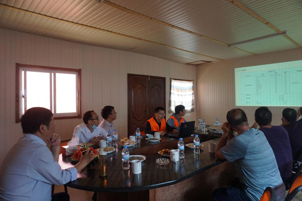 隨后,張周平具體查看了軍事學(xué)院項(xiàng)目的整體建設(shè)情況,詳細(xì)詢問了員工生活生產(chǎn)物資等后勤保障工作。座談會上,張周平首先聽取了項(xiàng)目負(fù)責(zé)人黃飛翔對項(xiàng)目生產(chǎn)經(jīng)營的工作匯報(bào),詳細(xì)了解了項(xiàng)目當(dāng)前進(jìn)展、面臨的困難、采取的措施和下一步工作計(jì)劃。張周平對項(xiàng)目部在疫情期間積極作為、勇保履約的努力表現(xiàn)給予了充分肯定,并對后期工作開展提出了明確的要求。他強(qiáng)調(diào),一是要嚴(yán)格做好疫情防控以及其他疾病或意外事故的預(yù)防,時刻將全體員工的身體健康和生命安全放在首位;二是要嚴(yán)把質(zhì)量關(guān),打造精品優(yōu)質(zhì)工程,增強(qiáng)公司核心競爭力;三是要推動項(xiàng)目高質(zhì)高效履約,樹立良好的公司形象,為公司進(jìn)一步拓展當(dāng)?shù)厥袌龊粚?shí)基礎(chǔ)。