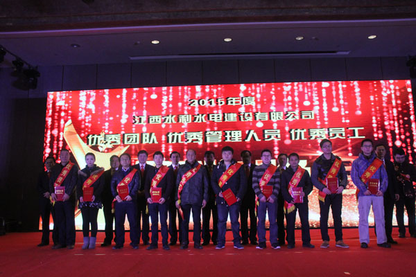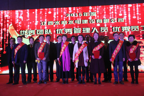 隨后,公司董事長王元旦、總經理徐洪良和相關領導向海外公司等10個優秀團隊、郭洪有等22位優秀管理者和周家煌等30位優秀員工進行頒獎,感謝他們在過去的2015年為江西水建發展所作出的貢獻。
